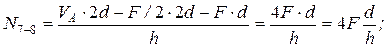 Найдём усилия в стержнях третьей панели через значения F и d. При этом часть вычислений требуется выполнить самостоятельно. N3-4=? (сеч.II-II). Искл. N3-8 и N7-8. Моментная точка – 8.