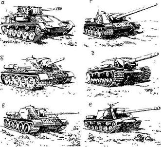 Рис 6.1 Самоходные артиллерийские установки а - СУ-76М. б - СУ-122, в - СУ-85, г - СУ-100, д - CV-152, е - ИСУ-122С