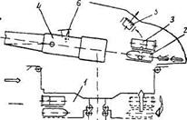 Рис 6.8. Структура системы оружия танка Наводчик ведет подготовку прицельного выстрела, включающую заряжание орудия, определение дальности до цели и другие операции. Заряжание орудия производится A3 в следующей последовательности: наводчик нажимает клавишу для выбора соответствующего типа снаряда в зависимости от цели, после чего происходит поворот боеукладки 1до положения, при котором снаряд 2 выбранного типа и боевой заряд 3 оказываются в положении, откуда движением подъема они могут быть перемещены на линию досылания. Одновременно с поворотом боеукладки A3 начинается приведение пушки 4 приводом стабилизатора по вертикали на угол заряжания (+2° 30'), на котором качающаяся часть пушки фиксируется электромагнитным стопором 6. Далее механизмом подъема снаряд выбранного типа и заряд из боеукладки A3 поднимаются на линию досылания, и механизмом досылания, размещенным в корме башни, снаряд досылается в камору орудия. В крыше башни открывается лючок и поддон 5 (металлическая часть гильзы заряда) выбрасывается из боевого отделения за пределы танка. После реверса цепи досылателя механизм подъема опускает на линию досылания заряд 3, который движением цепи досылателя перемещается в камору орудия. При этом фланцем поддона сбиваются экстракторы, клин закрывается, цепь досылателя возвращается в исходное положение. Механизм подъема и устройство для улавливания поддонов также возвращаются в исходное положение. Стопор 6 освобождает качающуюся часть пушки, которая приводом стабилизатора по вертикали приводится в стабилизированный режим наведения. Если к этому моменту СУО выработало углы наводки орудия на выбранную цель, то приводы наведения отработают эти углы, придав оси канала ствола орудия необходимое положение в пространстве, после чего наводчиком производится выстрел. Экипаж производит оценку результатов стрельбы. Танк применяется в условиях непосредственного огневого контакта с противником и ведет огонь на поражение в условиях прямой видимости танкоопасных целей. Наиболее высокая эффективность достигается при поражении противника до производства им прицельного выстрела, что предполагает упреждение его в производстве выстрела, высокую вероятность попадания в цель с первого выстрела и нанесения ему поражения, исключающего ответный выстрел. Так, при достоверном поражении цели одним выстрелом упреждение в производстве прицельного выстрела не должно быть меньше времени нажатия оператором на кнопку производства выстрела, движения снаряда по каналу ствола и времени полета снаряда до цели. Если для достоверного поражения цели необходимо проведение двух-трех выстрелов, то величина времени упреждения соответственно увеличивается на время подготовки и проведения этих выстрелов. Поэтому к танковым СО и СУО предъявляются соответствующие требования по времени подготовки и производства прицельного выстрела. Упреждение противника в производстве прицельного выстрела зависит от продолжительности подготовки и проведения прицельного выстрела, времени полета снаряда до цели, времени поражающего воздействия на противника (пробитие броневой защиты, разрушения, воспламенение, взрыв). Продолжительность подготовки и производства выстрела определяется временными характеристиками СО, включающими продолжительность цикла за