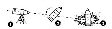 Указывается также, что с развитием динамической брони и средств активной защиты танков кумулятивный снаряд может оказаться полностью Рис. 6.14. Действие снаряда с траекторным доворотом: 1 - отстрел балластной массы; 2 - процесс доворота; 3 - подрыв снаряда