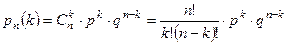 Если производится несколько независимых испытаний, причем вероятность события А в каждом испытании не зависит от исходов других испытаний, то такие испытания называют независимыми относительно события А. Пусть производится n независимых испытаний, в каждом из которых событие А может появиться либо не появиться. Условимся считать, что вероятность события А в каждом испытании одна и та же, а именно равна p. Следовательно, вероятность ненаступления события А в каждом испытании постоянна и равна q =1- p. Вероятность того, что при n испытаниях событие А осуществится ровно k раз и, следовательно, не осуществится n-k раз, равна