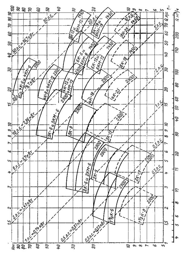 Рисунок 1.7 – Характеристики насоса НК 600-100 моноблочные электронасосы, с консольно расположенным на удлиненном валу электродвигателя рабочим колесом. Рассматриваемые насосы состоят из собственно насоса и взрывобезопасного электродвигателя, объединенных общим валом в единый агрегат. К фланцевому электродвигателю посредством переходника присоединен корпус насоса с крышкой. Переходники с разными размерами присоединительного фланца дают возможность, не меняя размеров корпуса насоса, присоединить его к электродвигателю с различной мощностью. Рабочее место установлено над удлиненной консольной частью вала электродвигателя и закреплено на ней гайкой. Опорами вала являются шарикоподшипники с консистентной смазкой. Корпус насоса, рабочее колесо и крышка изготавливаются из модифицированного чугуна. Входной патрубок насоса расположен аксиально, а напорный направлен вертикально вверх. Конструкция насосов позволяет менять направление напорного патрубка и устанавливать его под углами 90˚,180˚ или 270 ˚ к указанному основному положению. Взаимное положение крышки с приемным патрубком при этом остается неизменным. Основным видом уплотнения вала насоса является одинарное торцовое уплотнение с невращающейся пружиной. Торцовое уплотнение выполнено в виде предварительно собранного узла, устанавливаемого в насос полностью смонтированном состоянии, (рис. 1.8- рисунки 1.9, 1.10).