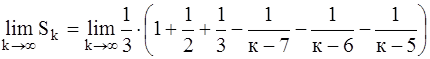 Итак, существует конечный предел последовательности частичных сумм S k . Следовательно, по определению, ряд сходится и его сумма равна