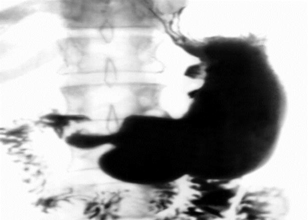 При рентгенологическом исследовании обнаруживается прямой признак язвенной болезни – «ниша» на контуре или на рельефе слизистой оболочки и косвенные признаки заболевания (местный циркулярный спазм мышечных волокон на противоположной по отношению к язве стенке желудка в виде «указующего перста», конвергенция складок слизистой оболочки к «нише», рубцово-язвенная деформация желудка и луковицы двенадцатиперстной кишки, гиперсекреция натощак, нарушения гастродуоденальной моторики).