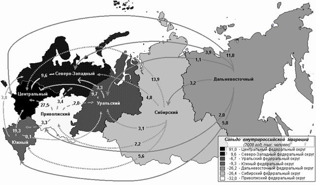 Показатели внутренней миграции населения Российской Федерации, 2008 г.