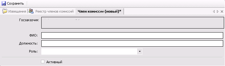 Запросы на разъяснениеРеестр членов комиссии Чтобы добавить члена комиссии, который будет осуществлять рассмотрения заявки (принятие решение о допуске участника или его отклонении), необходимо выполнить следующие действия: Войти в раздел