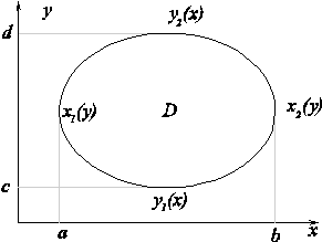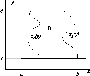 Из этого неравенства и равномерной непрерывности функции Рассмотрим область типа В, указанную на рисунке и функцию f, определенную на прямоугольнике [a,b]´ [c,d], содержащем область D.