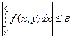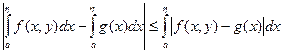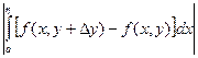 Далее |F(y+Dy) - F(y)| = Здесь используется ограниченность функции f и ее равномерная непрерывность. Определение. Пусть функция f(x,y) определена на [a,b] для любого yÎY. Говорят, что f(x,y) равномерно сходится к g(x) на [a,b] при y®y0 если "e >0$d >0"xÎ[a,b]"yÎUd(y0): |f(x,y) - g(x)|<e. Можно доказать, что если f(x,y) непрерывна иравномерно сходится к g(x) на [a,b] при y®y0 , то функция g(x) непрерывна на [a,b]. Доказательство. Выпишем неравенства |g(x)-g(x0)|=| g(x)-f(x,y) +f(x,y)-f(x0,y)-g(x0)+ f(x0,y)|£ | g(x)-f(x,y)|+ |f(x,y)-f(x0,y)|+ |g(x0)- f(x0,y)|. Для заданного e сначала выбираем d окрестность точки x0 так, чтобы в этой окрестности |f(x,y)-f(x0,y)|< e для любых y из некоторой окрестности точки y0. Это можно сделать в силу равномерной непрерывности функции f(x,y). Величины | g(x)-f(x,y)|, |g(x0)- f(x0,y)| можно сделать также < e выбором ещё меньшей окрестности точки y0 для всех x в силу равномерной сходимости f(x,y) к g(x). Теорема. Если f(x,y) непрерывна и равномерно сходится к g(x) на [a,b] при y®y0, то
