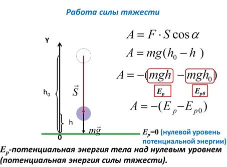 Контрольную работу высылать на адрес Напоминаем, что вы должны предоставить Работа силы тяжести равна изменению потенциальной энергии тела, взаимодействующего с Землей, взятого с противоположным знаком. Нулевой уровень – это уровень, на котором потенциальная энергия силы тяжести равна нулю. Кинетическая энергия тела массой m, движущегося со скоростьюV, равна работе, которую надо совершить, чтобы сообщить телу эту скорость. Физический смысл кинетической энергии Ек – кинетическая энергия тела в конечном (последующем) состоянии. Ек0 – кинетическая энергия тела в начальном состоянии. А – работа любой силы (сил), действующей на тело. Изменение кинетической энергии тела равно работе всех сил, действующих на тело. Теорема о кинетической энергии А = Ек – Ек0 (математическая запись) А = Ек – Ек0 При Ек0=0 А = Ек Единица энергии называется джоуль (Дж)