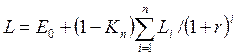 Если L < S, то выгоднее лизинг. Если L > S,то выгоднее покупка, за счет кредита. Пример. Предприятие рассматривает вопрос о приобретении оборудования. Первый вариант – лизинг за 600 тыс. руб с рассрочкой платежа в течение четырех лет. Второй вариант – покупка на заводе-изготовителе за 480 тыс.руб. Ставка налога на прибыль Кn = 40%. Предоплата E0 и остаточная стоимость оборудования Q равны нулю. Можно получить кредит в банке под r= 12% годовых. Используется равномерное начисление износа. Сравним эти варианты. В случае лизинга ежегодный лизинговый платеж равен L0= 600/4=150 тыс.руб. Тогда чистая приведенная стоимость посленалоговых лизинговых платежей равна