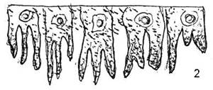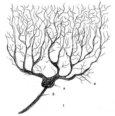 Рис.2 1 – нервная клетка Пуркинье: а – тело клетки; б – нейрит; в – дендриты. 2 – изолированные гладкие мышечные клетки.