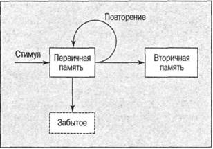 266 Глава 8, Память: теории и нейрокогнитология Рис. 8.2. Модель первичной и вторичной систем памяти. Адаптировано из: Waugh & Norman, 1965