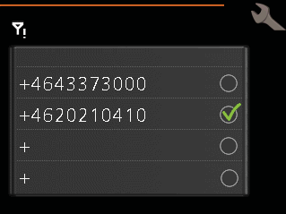 Телефонный номер не зарегистрирован в меню теплового насоса 5.3.5.