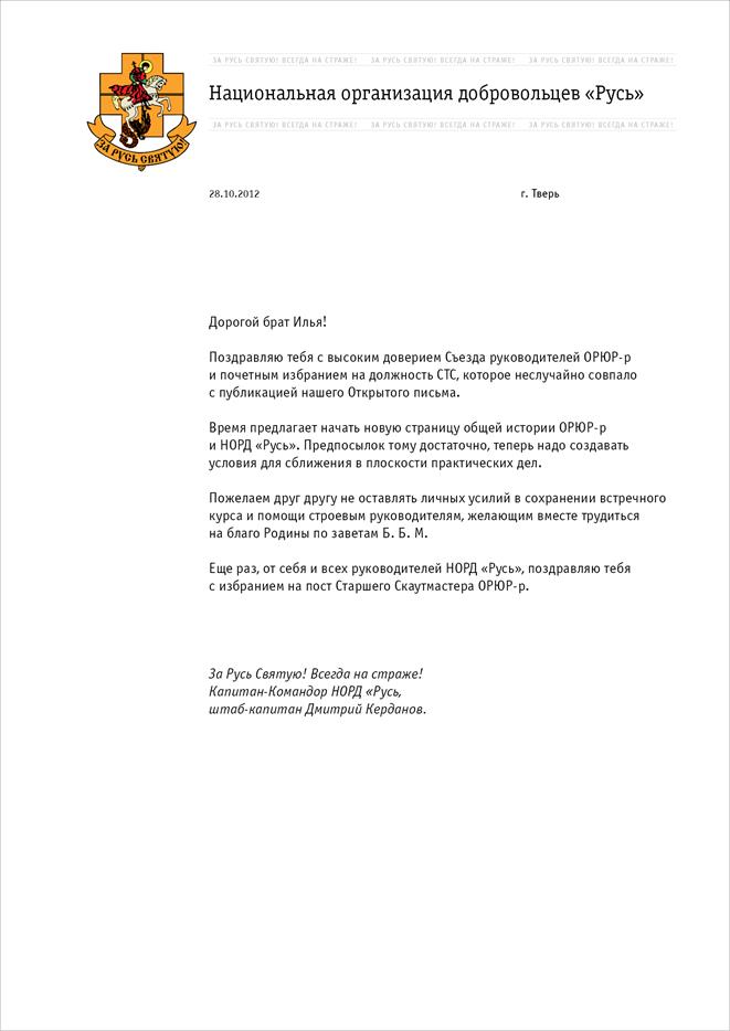 Начальнику дружины «Ставрополь» инс. Иванову Ивану Копия: нач.Штаба НОРД «Русь» шт.кап.Пертову Петру