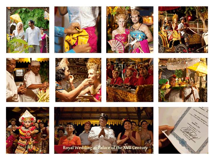 Джон Холм, Гарри Гаррисон Король и Император ОПИСАНИЕ СВАДЬБЫ Также рекомендуем заказать фото- и видеосъемку этого важного события Самая изысканная и экзотическая балийская свадебная церемония. Церемония проходит в королевском дворце, и это создает особенное, не похожее ни на что другое настроение. Церемония начинается с облачения в королевские свадебные наряды и накладывания национального макияжа. Точно так же, как древние правители, перед свадьбой молодожены совершают на золоченной колеснице путь вокруг деревни в сопровождении свиты, въезжают в основные врата дворца, где их будут встречать жители, держащие горящие факелы. Для них будет исполнен традиционный танец, после чего влюбленных подведут к Алтарю, где они приносят клятвы в пышно украшенном храме. А после этого сами особы королевских кровей вручают молодым свадебные сертификаты и приглашают их и всех гостей на праздничный ужин с молочным поросенком, устроенный в их честь. Церемония завершится ночным представлением популярных балийских танцев в исполнении лучших танцоров и танцовщиц острова.