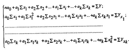 где Y1,2…k - теоретические значения результативного признака, полученные в результате подстановки соответствующих значений факторных признаков в уравнение регрессии; х1, х2, …, хк - факторные признаки; а0, а1, …, ак - параметры модели (коэффициенты регрессии).