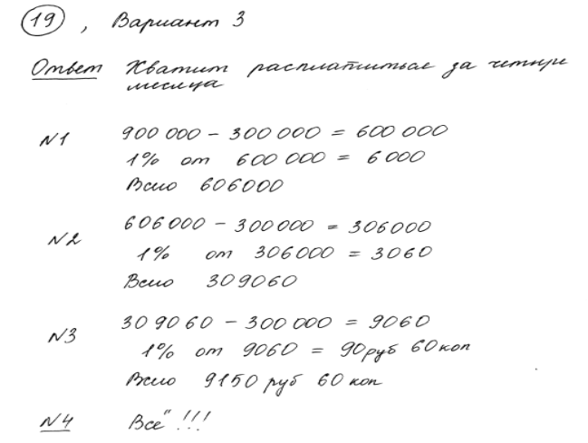 Здесь и ответ верен, и движение денег в целом описано верно. К сожалению, в вычислениях есть просчет в первой клетке третьей строки. Добавлен не 1%, а 10%. Эта ошибка «играет» в пользу клиента, но вычислительная ошибка имеется.