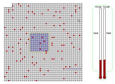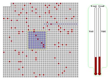 Изучая различные процессы и явления, часто используют достаточно простые модели, позволяющие, однако, выяснить основные закономерности, не отвлекаясь на многочисленные нюансы. Например, теплообмен можно моделировать с помощью системы, состоящей из 1600 атомов. Каждый атом может находиться в двух состояниях: возбужденном (нагретом) и невозбужденном (холодном). Возбужденные атомы помечаются красным цветом. Движения возбужденных атомов независимы, возбуждение передается только ближайшим соседям (для квадратной сетки их число равно 8) и случайным образом, так что вероятность передачи возбуждения любому соседнему атому одинакова. Если в начальный момент времени в подсистеме (какой-либо части системы, содержащей небольшое число атомов) число возбужденных атомов велико, то в дальнейшем будет наблюдаться миграция энергии из подсистемы во внешнюю систему. Другими словами подсистема будет охлаждаться за счет нагревания внешней (оставшейся части) системы. Каким будет конечное состояние системы? Если наблюдать за системой на микроскопическом уровне, то есть следить за движением отдельных атомов, то конечное состояние не существует. Энергия будет бесконечно долго мигрировать по системе. Однако для наблюдателя следящего за системой “ в целом”, и не различающего движение отдельных атомов, существует конечное состояние. Это состояние характеризуется равномерным распределением энергии по всей системе и называется состоянием термодинамического равновесия. Таким образом, процесс, сопровождающийся взаимодействием частиц (например, соударениями) и случайной передачей энергии возбуждения, приводит к рассеянию энергии. Как только энергия равномерно распределяется по всем доступным состояниям, состояние системы “в среднем” остается в дальнейшем неизменным. Результатом миграции энергии является охлаждение подсистемы и нагревание внешней системы. В состоянии равновесия, когда возбуждение равномерно распределено по всем атомам, энергия подсистемы меньше, чем энергия внешней системы, так как размеры подсистемы меньше размеров внешней системы, а значит в ней меньше число возбужденных атомов. Однако отношение числа возбужденных атомов к общему числу атомов одинаково в обеих системах. Таким образом, температуру можно определить как величину пропорциональную отношению числа возбужденных атомов к общему числу атомов системы. Температура служит мерой неупорядоченного движения, являясь термодинамической характеристикой систем, состоящих из большого числа частиц. Важное отличие температуры и энергии состоит в том, что система может иметь большую энергию, но низкую температуру. Например, для достаточно большой системы число возбужденных атомов может быть велико, а значит и велика суммарная энергия, однако, отношение числа возбужденных атомов к общему числу атомов мало (система велика), и, следовательно, энергия мала. Все перечисленные свойства рассматриваемой модели отражают свойства реальных процессов, реальной Вселенной. Вместе с тем в рассматриваемой модели можно получить состояния, который не реализуются в действительности. Например, если задать начальные условия так, чтобы все возбужденные атомы находились в подсистеме, а во внешней системе все атомы оставались невозбужденными, то это соответствовало бы абсолютному 