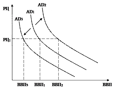Розглянемо нецінові детермінанти (фактори) сукупного попиту. 1. Зміни у споживчих витратах домашніх господарств. Вони можуть здійснюватись під впливом таких факторів: а) добробут споживачів. Якщо добробут споживачів, який розміщений у фінансових активах (акції, облігації) та нерухомості (земля, будинки), зросте, сукупний попит збільшиться за будь-якого рівня цін; б) заборгованість споживачів за кредитами. Якщо вона велика, то споживчі витрати будуть зменшуватися; в) податки на споживачів. Зменшення податків призводить до збільшення доходу кінцевого використання та споживчих витрат і навпаки; г) очікування споживачів. Якщо домашні господарства очікують, що їхні доходи зростуть, то на споживання витрачатиметься більше і навпаки. 2. Зміни в інвестиційних витратах, які можуть відбуватися під впливом таких факторів: а) процентна ставка. Збільшення процентної ставки, викликане будь-якими причинами, крім росту цін, веде до зменшення інвестиційних видатків, а отже й до зменшення сукупного попиту; б) очікувані прибутки від інвестицій. Якщо прогнози на отримання прибутку добрі, попит на інвестиційні товари збільшиться; в) податки з фірм. Збільшення податків веде до зменшення прибутку, отже до зменшення зацікавленості в інвестиціях; г) технологія (поява нових технологій спричиняє збільшення попиту на інвестиційні товари); д) надмірні потужності. Збільшення надмірних потужностей стримує попит на інвестиційні товари. 3. Зміни в державних закупівлях. Між збільшенням державних закупівель та сукупним попитом існує пряма залежність. Якщо державні закупівлі зменшуються, сукупний попит скорочується. Збільшення державних закупівель за умови незмінних податків та процентної ставки веде до підвищення сукупного попиту. 4. Зміни у витратах на чистий експорт можуть бути обумовлені дією таких нецінових факторів: а) національний дохід інших країн. Збільшення національного доходу інших держав викликає збільшення попиту не лише на товари внутрішнього виробництва, а й на імпортні. Отже, експорт інших країн у дану державу збільшується. б) валютні курси (ціна грошової одиниці держави, виражена в грошових одиницях інших країн). Збільшення курсу вітчизняної валюти відносно інших валют веде до зменшення експорту та зростання імпорту.
