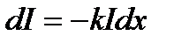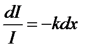 k - натуральный показатель преломления (k - коэффициент пропорциональности, зависящий от поглощающей среды и не зависящей в определённых пределах от интенсивности света); Знак «минус» означает, что интенсивность света при прохождении через вещество уменьшается, т.е. dI<0.