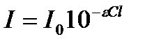α – натуральный показатель поглощения света, относительный к концентрации вещества, k=αС – это соотношение установил Бер для слабых растворов. В лабораторной практике закон (4) обычно выражают через показательную функцию: