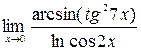 Tg(ln(cos 2x)) Arcsin(tg 3x) Правило Лопиталя Геометрический смысл производной. Дифференциал функции в точке Основные правила дифференцирования ПРОИЗВОДНАЯ ФУНКЦИИ Вычисление предела степенно-показательной функции Вычисление пределов от трансцендентных функций Основные свойства пределов и эквивалентные функции ТЕОРИЯ ПРЕДЕЛОВ
