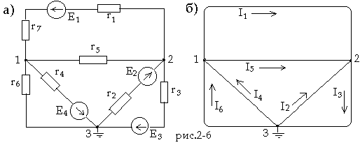 Направления найденных токов указаны на структурной схеме рис.2-6,б) цепи рис.2-6,а).
