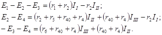 В ветви с сопротивлением r4 истинный ток I4 получится от наложения контурных токов III и IIII и будет иметь направление контурного тока III: