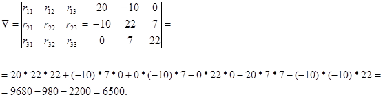 Покажем, как эта же задача может быть решена с помощью определителей. Для этого уравнения контурных токов следует записать в форме (смотри раздел 1.5):