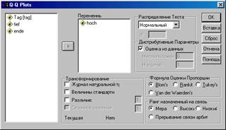 Рис. 5. Диалоговое окно Q-Q Plots