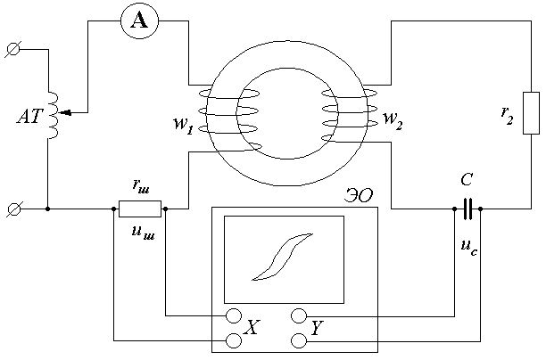 Программа работы. 1. Осциллографирование гистерезисной петли катушки с сердечником из ферромагнитного материала с помощью электронного осциллографа