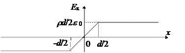 Внутри пластины напряженность возрастает пропорционально х, а вне пластины от х не зависит.