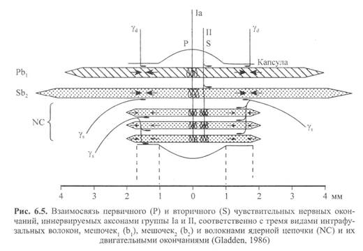 У немлекопитающих нервно-сухожильные веретена представляют собой расположенные вдоль сухожильных пучков не покрытые оболочкой рецепторы (пучки коллагеновых волокон). У млекопитающих же, напротив, они покрыты оболочкой и, как уже упоминалось, располагаются у мышечно-сухожильных или мышечно-апоневротических соединений. Значение этого различия, по мнению исследователей, состоит в следующем. Во-первых, окруженные оболочкой веретена являются более чувствительными к данной величине стимула и более точными в определении и передаче информации в ЦНС. Во-вторых, местонахождение нервно-сухожильных веретен обеспечивает их экстремальную чувствительность к любому изменению напряжения отдельных мышечных волокон, к которым они прикреплены (J.C.Moore, 1984).