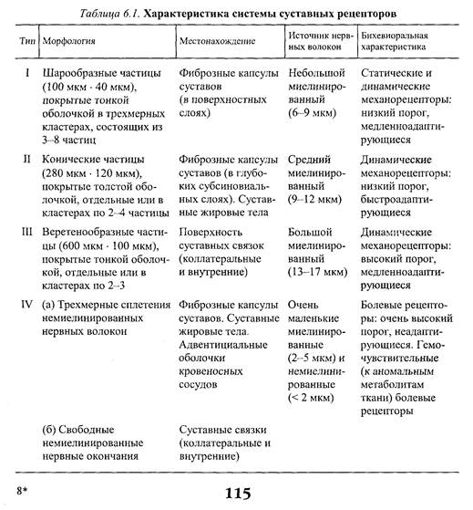 Наука о гибкости Также известно, что влиянию нервно-сухожильных веретен могут противостоять дополнительные сигналы, поступающие из высших центров. Процесс снижения к минимуму влияния нервно-сухожильных веретен называется растормаживанием мотонейронов-агонистов. О важности этого процесса для спорта говорили Брукс и Фехи (1987): «Использование растормаживания применяется в спортивной тренировке с целью довести физическую работоспособность до пределов возможности тканей. В таком виде спорта, как армрестлинг, иногда встречаются разрывы мышц и сухожилий и переломы костей. У высокомотивированных спортсменов и у расторможенных индивидуумов сочетание активного мышечного сокращения и напряжения, производимого соперником, может превысить силу тканей». Суставные механорецепторы (рецепторы суставов). Все синовиальные суставы тела имеют четыре различных нервных окончания. Эти суставные рецепторы ощущают механические силы, действующие на суставы, такие, как давление растяжения, и поэтому их называют суставными механо-рецепторами. Выделяют четыре типа суставных механорецепторов (табл. 6.1). Такая классификация основана на соответствующих морфологических и бихевиоральных характеристиках нервных окончаний. В следующих разделах мы рассмотрим эти четыре вида суставных механорецепторов. Суставные рецепторы типа I Механорецепторы типа I состоят из кластеров тонких, покрытых оболочкой шарообразных частиц. Они находятся главным образом во внешних (поверхностных) слоях фиброзной суставной капсулы. Каждый кластер состоит приблизительно из 8 частиц. Каждая частица иннервируется отдельным миелинированным волокном группы II (диаметром 6-9 мкм). Плотность этих механорецепторов более высокая в проксимальных (например, тазобедренный), чем в дистальных (например, голеностопный) суставах. С физиологической точки зрения частицы типа I ведут себя как низкопороговые медленноадаптирующиеся рецепторы. Следовательно, они реагируют на очень незначительную механическую нагрузку и продолжают выпускать нервные импульсы на протяжении действия механического стимула. Чтобы стимулировать их, достаточно усилие порядка 3 г. Более того, часть этих рецепторов низкого порога всегда активна при любом положении сустава и даже в том случае, когда он неподвижен. Их интенсивность разрядки в покое обычно имеет частоту примерно 10-20 Гц (импульсов в секунду). Механорецепторы типа I имеют целый ряд функций, включая сообщение направления, амплитуды и скорости движений суставов; регуляцию изменений давления в суставе; содействие постуральным и кинестетическим ощущениям; содействие ЦНС в регуляции постурального мышечного тонуса, а также тонуса мышц при движениях сустава; осуществление ин-гибиторного влияния на поток болевой афферентной активности из суставной рецепторной системы типа IV. Рецепторы типа I можно разделить на статические и динамические механорецепторы.