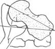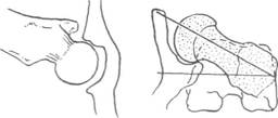 Если смотреть сверху, Когда угол «антеверсии» небольшой, головка нормально шейка ориентирована входит в суставную ямку и сохраняется хороший суставной вперед под углом 10-30° контакт даже при латеральном вращении