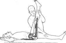 точке, расположенной вблизи малого вертела (рис. 17.10, б). Седалищно-бедренная связка проходит от седалищной кости (ниже вертлужной впадины) к тыльной части шейки бедра (рис. 17.10, в). Мышечная сила и координация Стабильность тазобедренного сустава увеличивают также мышцы, проходящие почти параллельно шейке бедра. Они обеспечивают соприкосновение головки бедра с вертлужной впадиной; это грушевидная мышца, внешний запиратель, большая и малая ягодичные мышцы. В диапазоне движения весьма важной является роль, которую играют эти мышцы во время активного растягивания, в отличие от их роли, связанной с тугоподвижностью при пассивном растягивании. Например, при активном отведении ног ограничительным фактором может быть недостаточная сила или координация агонистов (т.е. отводящих мышц), чтобы создать движения. Наконец, не следует забывать, что сопротивление группы мышц-антагонистов и оболочек их соединительной ткани также является одним из ключевых факторов, определяющих диапазон движения. Таким образом, во время отведения главными ограничительными факторами являются тугоподвижность приводящих мышц и оболочек их соединительной ткани. Пределы диапазона движения тазобедренного сустава. Тазобедренный сустав выполняет шесть основных видов движений: сгибание, разгибание (выпрямление), приведение, отведение, внутреннее (пронация) и внешнее (супинация) вращение. Рассмотрим каждое из этих движений.