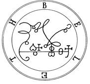 Тринадцатый дух зовется БЕЛЕТ (Beleth) (или БИЛЕТ (Bileth), или БИЛЕТ (Bilet)). Это Ужасный и Могущественный Король. Он едет на палевой лошади, и перед ним трубят трубы и играют различные музыкальные инструменты. Сначала он кажется очень свирепым. Но это так только до тех пор, пока Заклинатель не осмелеет. Для того чтобы это произошло, он [Заклинатель] должен держать в руке Ореховый Жезл, прочертив им линии в направлении Южной и Восточной сторон таким образом, чтобы получился треугольник, но не круг. И там он сможет командовать [БЕЛЕТОМ] благодаря Обязательствам и Обязанностям Духов, как это в дальнейшем и произойдет. И если он [БЕЛЕТ] все же не войдет в треугольник, произнеси вслух Обязательства и Заклинания перед ним, и тогда он согласиться повиноваться и войдет в него. И тогда Заклинатель сможет командовать им. К тому же он [заклинатель] должен быть с ним любезен, потому что он [БЕЛЕТ] - Великий Король, ему надо оказывать почтение как это делают Короли и Принцы, которые ему прислуживают. И на среднем пальце твоей левой руки должно быть надето Серебряное Кольцо, и держи его перед лицом своим (чтобы уберечься от огненного дыхания свирепого Духа; образец этого кольца дается в конце инструкций для Магического Круга, и т.д., в Гоетии - прим. перев.). Также следует поступать при встрече с АМАИМОНОМ (Amaymon). Этот Великий Король БЕЛЕТ (Beleth) может вызвать любовь во всех ее проявлениях, и для Мужчин и для Женщин, если Мастер Заклинатель хочет удовлетворить свое желание. Он принадлежит к Чину Властей и управляет 85 Легионами Духов. Здесь его Величественная Печать, которую надо носить на своей груди во время делания.