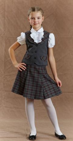 Артикул: К-126 Комплект входит жилетка с воротником и юбка с поясом сзади на резинке Материал: П/э, вискоза Цена: 840,00 руб. Начало формы Размер изделия: * 122-128/60 128-134/64 134-140/68 140-146/72 146-152/76 152-158/80 Цвет изделия: * Серый / клетка серо-бордовая Серый/ клетка серо-розовая Серый/ клетка серо-синяя