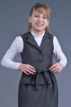 Артикул: Ж-14 Строгий жилет без лишних изысков. Весьма универсален и практичен. Любая девушка будет выглядеть стройнее в таком изделии. Жилет на подкладе. Теплый и практичный, в нем не будет жарко в теплом помещении. В комплекте в жилетом поставляется пояс - маленькое и очень удачное дополнение к образу юной модницы. На снимке так же представлены водолазка и юбка. Материал: 70% п/э, 30% вискоза Цена: 690,00 руб. Начало формы Размер изделия: * 146/76 152/80 158/84 164/88 Цвет изделия: * Темно-серый
