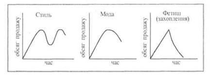 Рис. 33. Життєвий цикл товару Маркетологи заінтересовані у вивченні життєвого циклу товару з багатьох причин: 1) прискорення темпів науково-технічного прогресу сприяє 2) нова (особливо технічно складна продукція) потребує великих інвестицій; 3) з допомогою аналізу життєвого циклу можна передбачати зміну смаків споживачів та характеру конкуренції і коригувати план маркетингу; 4) концепція життєвого циклу дає змогу аналізувати товарний асортимент, забезпечує збалансоване поєднання цілком нових і зрілих товарів. Концепцію життєвого циклу можна застосовувати щодо виду продукції (телевізор), її типу (кольоровий телевізор), торгової марки (кольоровий телевізор фірми «Електрон»). Класифікація за типом продукції значно наочніше відображає етапи життєвого циклу, ніж вид або торгова марка товару. Види життєвих циклів товарів розрізняються за формою і тривалістю (рис. 34). Рис. 34. Види життєвих циклів товарів Традиційна крива (А) має чіткі періоди впровадження, зростання, зрілості, спаду. Класична крива (бум — В) дає графічний вираз популярного продукту зі стабільним збутом протягом тривалого часу. Крива захоплення (С) відтворює життєвий цикл товару, що мав швидкий злет і так само швидке падіння популярності. Довгострокове захоплення (£)) має аналогічну криву з тим, однак, що збут може тривати в невеликих розмірах достатньо довго. Сезонна крива (Е) або крива моди стосується товару, котрий добре реалізується в окремі періоди сезону. Крива відновлення або ностальгії (К) стосується застарілого товару, що знову набув популярності. Крива провалу (О) характеризує продукт, що взагалі не мав ринкового успіху. Ці криві життєвого циклу товарів є значною мірою типізованими і мають узагальнюючий характер. Так, наприклад, крива моди (£) має кілька різновидів, що відповідають різним напрямкам її вияву: стиль, фетиш, власне мода. Крива стилю має подібність до синусоїди, що дає змогу інтерпретувати моду як особливу форму вираження преференцій покупців, котра так чи так супроводить будь-яку сферу діяльності.
