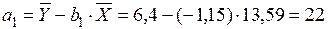 Для расчета коэффициента а1 подставим в прямое уравнение регрессии вместо b1 рассчитанное значение, а вместо Х и Y средние арифметические значения двух выборок из таблицы: