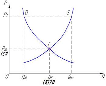 РЕШЕНИЕ: а) Qd = Qs = › 2500-200P1 = 1000+10P1 = › 210P1 = 1500 P1 = 7, 1 руб. – равновесная цена; Подставляем во вторую формулу: 1000+10х7,1 = › QЕ = 1071 шт.