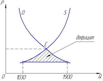 б) Р1 > Р = › 7,1 р. > 3 ден. ед. Qd = 2500-200х3 = 1900 шт. Qs = 1000+10х3 = 1030 шт. 1900-1030 = 870 = › последствием является – дефицит