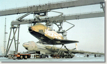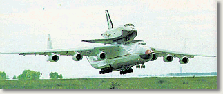 Возможное сокращение объема работ на Байконуре и начало разработки ракет-носителей большей грузоподъемности на базе модификации ракет "Энергия" заставили искать пути существенного повышения грузоподъемности средств воздушной доставки. Самолет ВМ-Т "Атлант" может транспортировать грузы массой до 50 тонн, а для перспективных разработок масса грузов может превышать 200 тонн. Совместно с ОКБ им. О.К.Антонова был проработан проект потребного для этого самолета-транспортировщика. На основе разработанного проекта была проведена модификация самолета Ан-124 и на его базе создан транспортный самолет Ан-225 "Мрия" грузоподъемностью до 225 тонн на внешней подвеске. Он впервые поднялся в воздух в декабре 1988 года, а в 1989 году осуществил транспортировку "Бурана" на авиационный салон в Ле-Бурже (Франция) и позднее - несколько демонстрационных полетов в Европу и Америку.