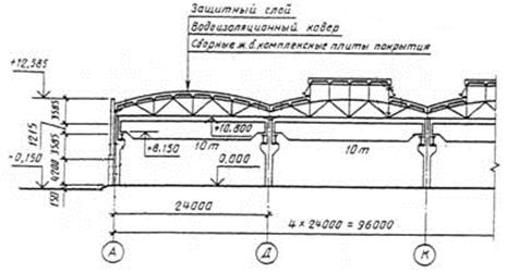 Рисунок Ж.1 – Пример выполнения разреза одноэтажного производственного здания