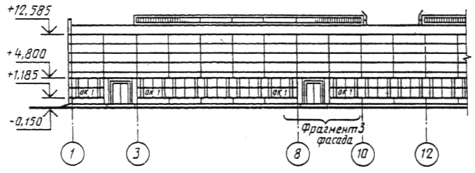 Рисунок И.1 – Пример выполнения фасада производственного здания Фрагмент 3 фасада