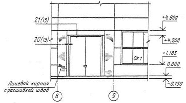 ![]() Рисунок И.2 – Пример выполнения фрагмента фасада производственного здания