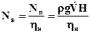 Мощность на валу Nв больше полезной мощности в связи с потерями энергии в насосе, которые учитываются коэффициентом полезного действия (к.п.д.) насоса н: