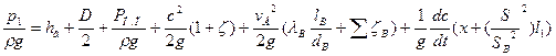 Следует учесть лишь, что в линии всасывания в этом случае течения будет равномерным.Поэтому уравнение Бернулли примет вид
