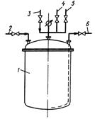 3 – лопатки; 4 – линия для залива насоса перед пуском; 5 – всасывающий трубопровод; 6 – обратный клапан;